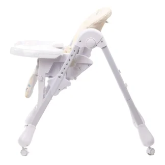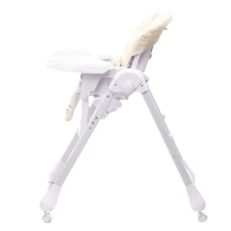 Model je dizajniran tako da roditeljima olakša svakodnevnu upotrebu – jednostavno se sklapa, lagan je za pomeranje, a točkovi omogućavaju lako prenošenje iz prostorije u prostoriju. Udobno sedište sa mekom PVC presvlakom pruža detetu prijatan osećaj tokom hranjenja, dok sigurnosni pojasevi u pet tačaka obezbeđuju stabilnost i sigurnost.