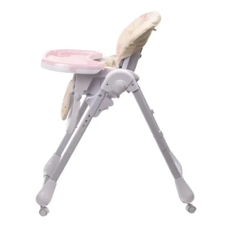 Model je dizajniran tako da roditeljima olakša svakodnevnu upotrebu – jednostavno se sklapa, lagan je za pomeranje, a točkovi omogućavaju lako prenošenje iz prostorije u prostoriju. Udobno sedište sa mekom PVC presvlakom pruža detetu prijatan osećaj tokom hranjenja, dok sigurnosni pojasevi u pet tačaka obezbeđuju stabilnost i sigurnost.