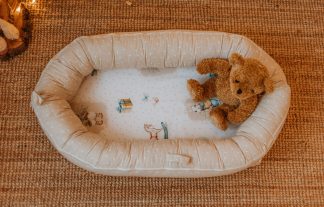 Izrađen je od 100% mekanog pamuka koji bebi stvara dodatnu udobnost koja je neophodna u prvim mesecima. Zbog svoje praktičnosti, vrlo je lak za korišćenje – jednostavno postavite proizvod na sigurnu podlogu, postavite bebu u njega i budite spokojni da se beba neće prevrnuti.