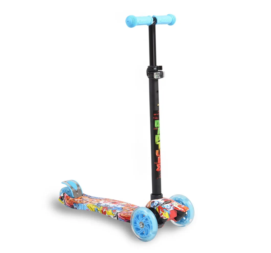 Cangaroo Dečiji trotinet Rapture Blue CAN5435 PU laki točkovi veličine 120x30mm i zadnja dva 80x30mm; Visina upravljača 65-87 cm; Veličina osnove 540×130 mm; Prednja svetla; Maksimalno opterećenje do 40 kg, Težina: 2,58kg