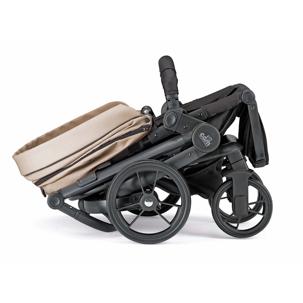 KOLICA: aluminijumski ram sa reverzibilnim (obrtnim) sedištem (ka roditelju sedište se okreće u uzrastu od 6-12 meseci, a u smeru vožnje od 12-36 meseci ), veliki zadnji točkovi lako se skidaju sa rama kolica, prednji rotirajući točkovi, kočnica, naslon sedišta kolica ima 4 položaja sa jednoručnim podešavanjem, zaštitna prečka kolica se može skinuti, zaštitni pojas vezan u 5 tačaka, obloženi rameni pojasevi, produžena tenda, korpa za kupovinu. Kompaktno sklapanje kolica, kao knjiga.