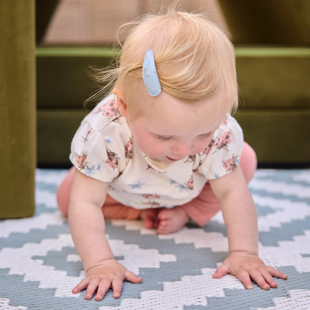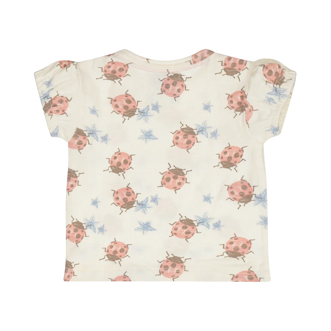 Meka, slatka i divno prozračna, Dirkje majica u sivo beloj boji sa ružičastim detaljima savršena je za sunčano vreme. Štampa bubamare čini je izuzetno simpatičnom, a rastezljiva pamučna mešavina obezbeđuje celodnevnu udobnost. Ova majica za devojčice je dostupna u veličinama do 86 i ima kopče na ramenu radi lakšeg oblačenja.