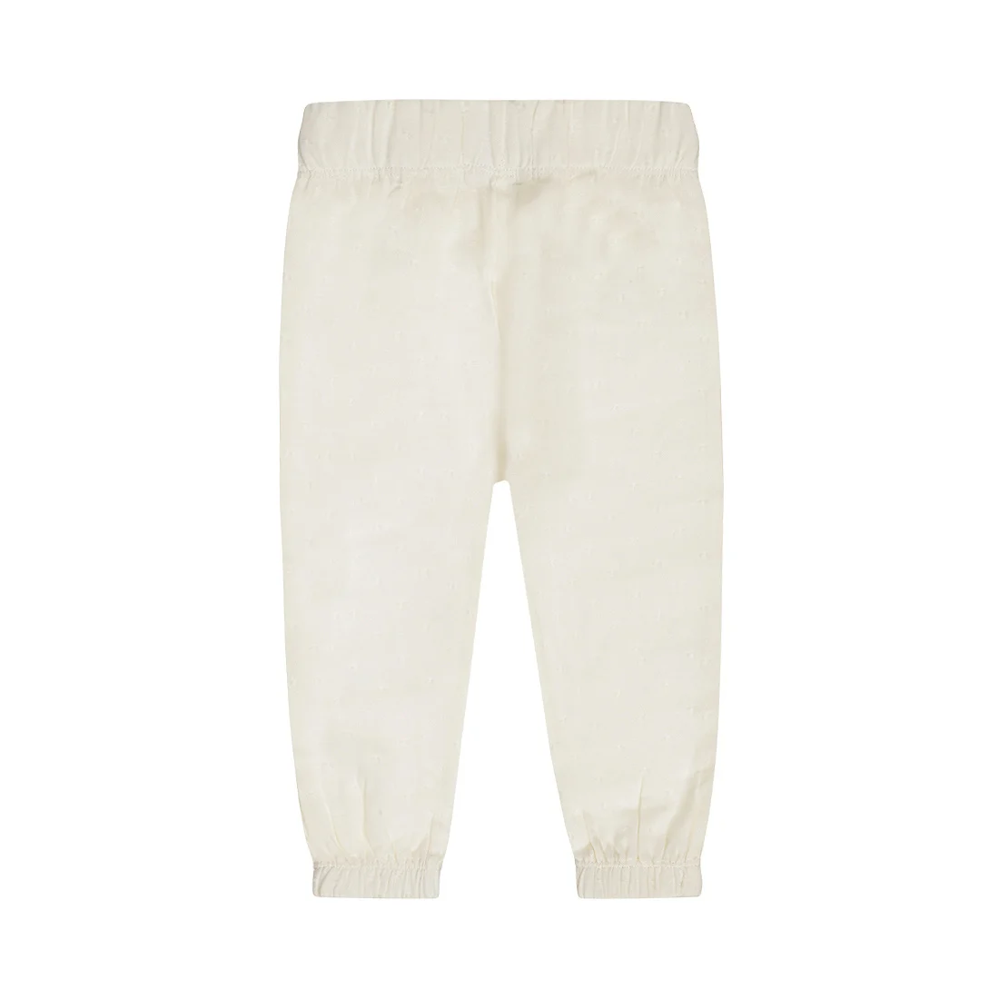 Savršeno za letnje dane! Ove Dirkje pantalone u bež boji su napravljene od 100% pamuka i imaju suptilno tkanje na tačkice. Lagani materijal deluje prozračno i pruža udobno pristajanje. Pantalone za devojčice imaju elastični struk sa simpatičnim ukrasnim kanapom i elastičnim nogavicama, obezbeđujući dobro prijanjanje, a istovremeno pružaju lepršavv osećaj. Savršeno ih uparite sa veselom majicom iz kolekcije Dirkje. Specifikacije Brend: Dirkje Sezona: Proleće/Leto 2026 Tema: 02 Devojke tako slatke Kolekcija: Odeća za devojčice (92-164) / Odeća za bebe (44-86) Pol: Devojke Boja: sivo-bela Sastav: 100% pamuk Broj artikla: N58369-35