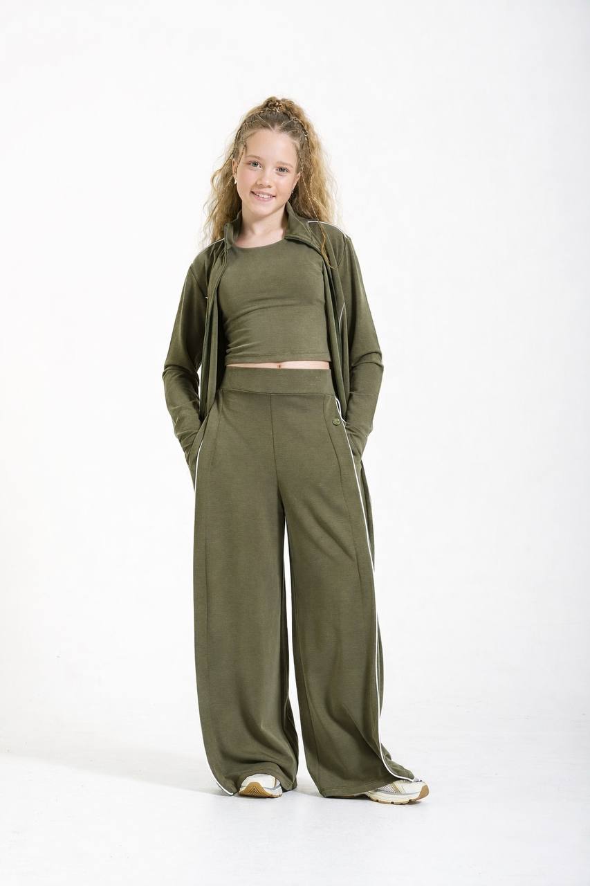 Sportski set: Uparite ga sa maslinastim širokim pantalonama (model 8404) i crop-topom iz iste kolekcije za vrhunski usklađen izgled.