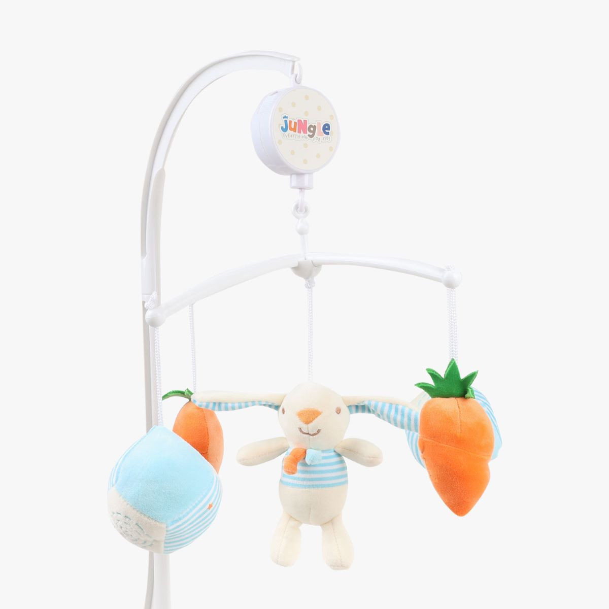 Jungle muzička vrteška zeka može se pričvrstiti na krevetac ili kolevku. Ovaj proizvod podstiče slušnu i vizuelnu percepciju deteta, a takođe doprinosi njegovom spavanju i odmoruJungle muzička vrteška za bebe je specijalizovani uređaj dizajniran za bebe, koji kombinuje zvuke umirujuće muzike, kako bi stvorilo smirujuću i stimulativnu atmosferu za bebu. Ove vrteške obično se postavljaju iznad bebe, najčešće na ivicu kreveta ili dečijeg kreveca, i kreću se polako u krug, dok svira muzika koja pomaže u opuštanju ili uspavljivanju bebe.Proizvod je namenjen deci starijoj od 0+ meseci.