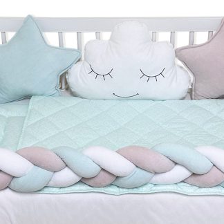 Preslatki dečiji kompleti iz kolekcije Bambino su izrađeni od pamučnog materijala sa kombinacijama koje su obožavane – pletenica + dekorativni jastučići oblak i zvezda, tako da verujemo da nećete imati dileme kod izbora. SADRŽAJ KOMPLETA: Komplet sadrži: ogradicu pletenicu dimenzije 240x15cm, 2x jastuče zvezda 40x40cm, jastuče oblak 50x40cm, jastuče 30x40cm, jorgan 90x60cm, donji čaršav dimenzije 60x120cm SIROVINSKI SASTAV: pletenica, jastučići zvezda i oblak: pamučni pliš (80%pamuk, 20%poliester), donji čaršav, jastuče i jorgan: navlaka 100% pamuk; punilo: 100% poliester
