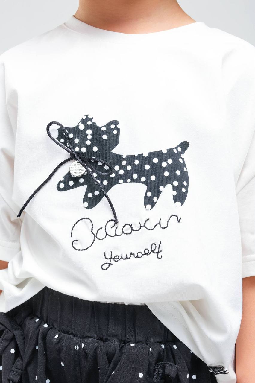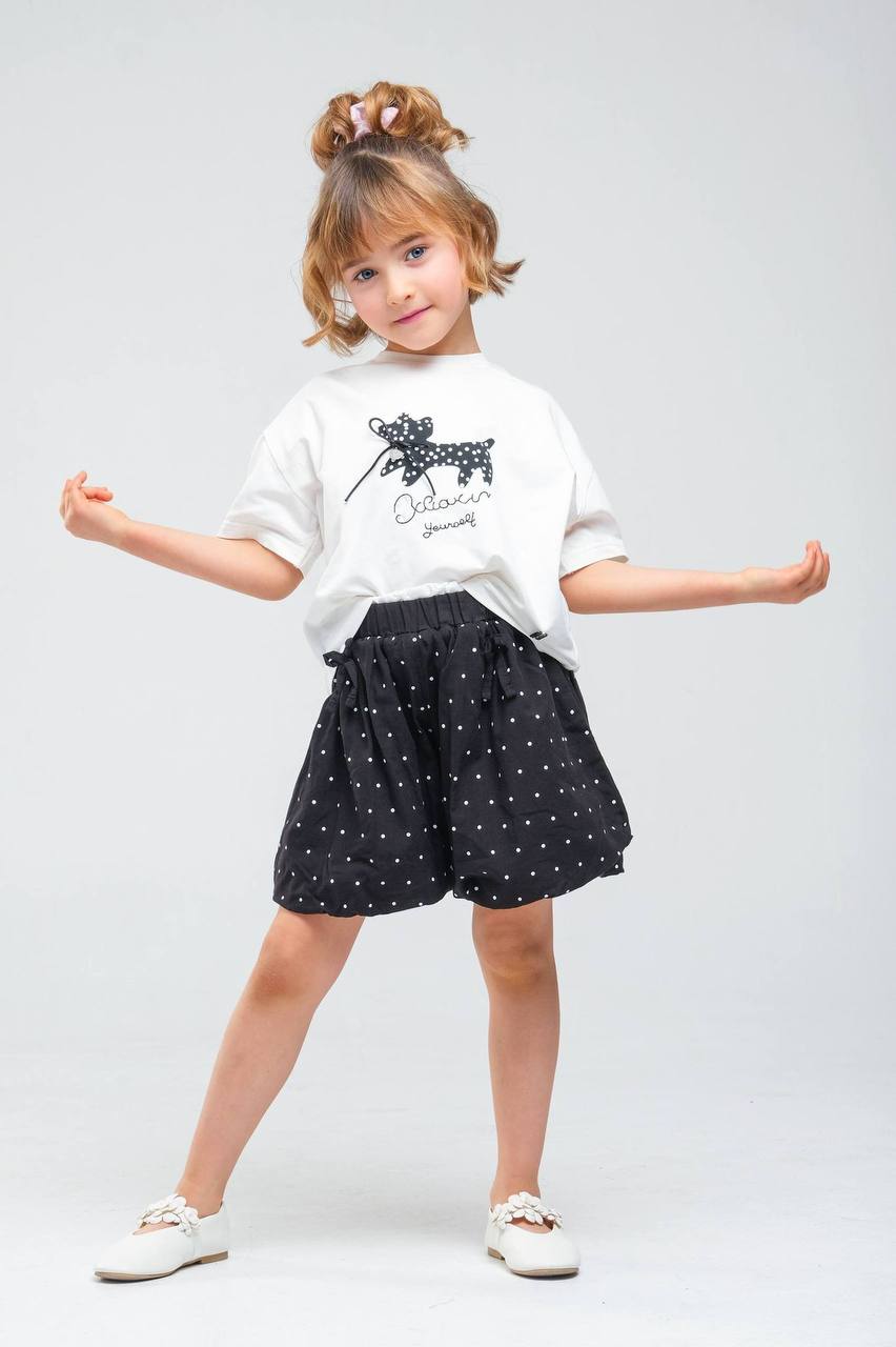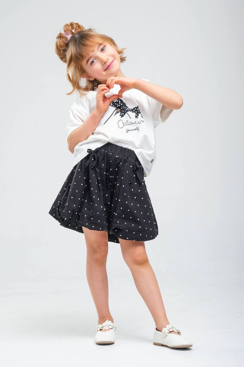 Dečiji Set: Elegantna Crno-Bela Kombinacija (Majica + Suknja-Šorc)