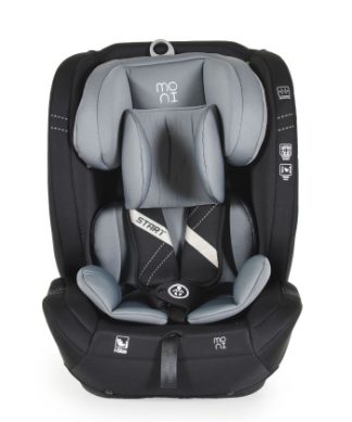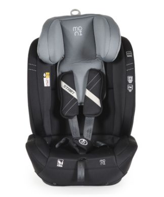 Moni Start i-Size auto sediste za decu 76-150cm – Grey je dizajnirano za decu visine 76-150 cm, a približna starost do 12 godina (od 9 do 36 kg).