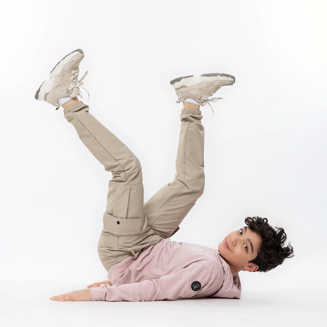 Kada su deci potrebne pantalone koje mogu da isprate svaki skok, trk i avanturu, naš tehnički cargo model u neutralnoj bež nijansi je neprikosnoven izbor. Napravljene od napredne mešavine materijala, ove pantalone spajaju moderan urbani dizajn sa performansama sportske opreme, pružajući detetu udobnost bez kompromisa.