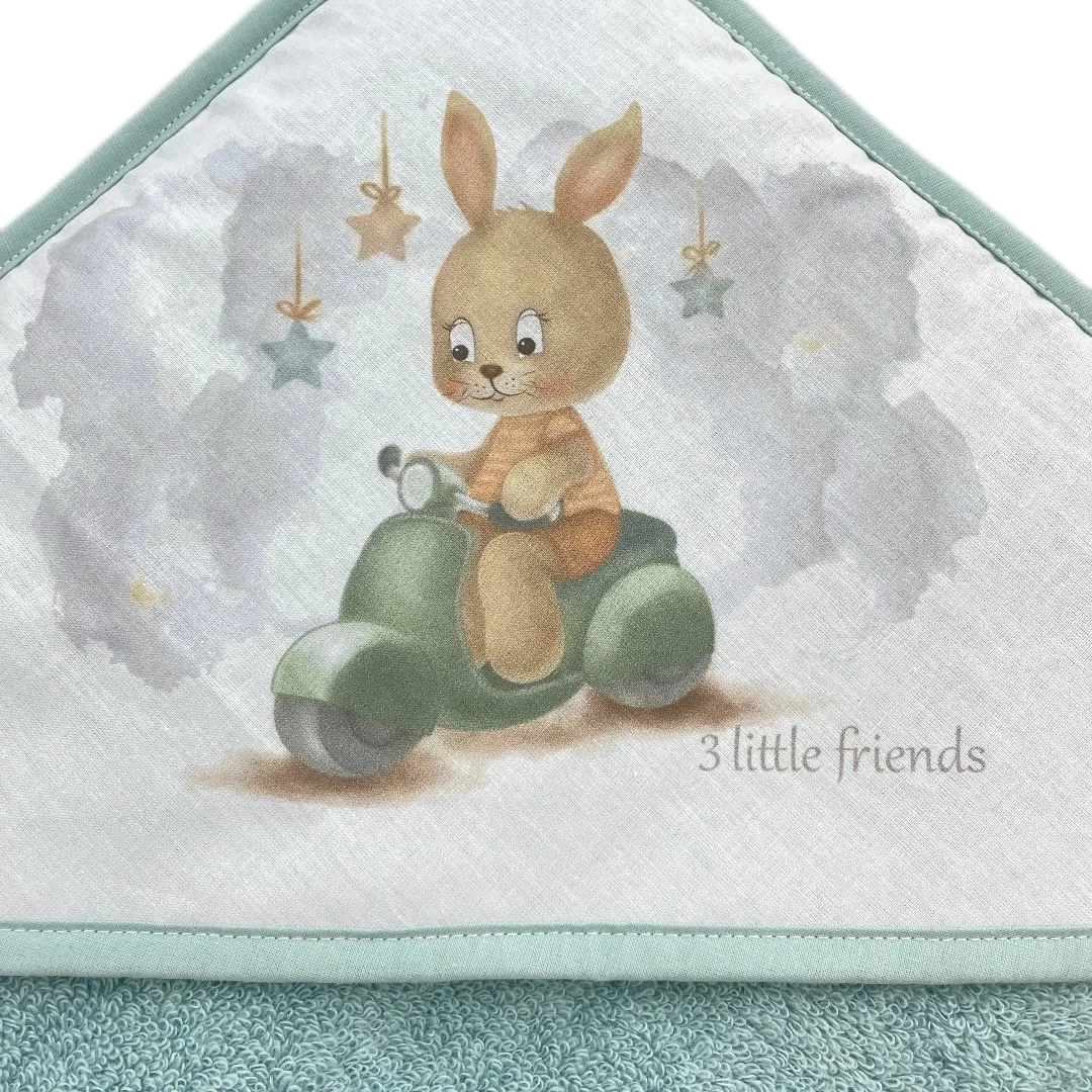 Ušuškajte svoju bebu nakon kupanja u najnežniji trenutak dana uz naš peškir sa kapuljačom Zeka na motoru, dizajniran da pruži toplinu, udobnost i sigurnost od prvog dodira.