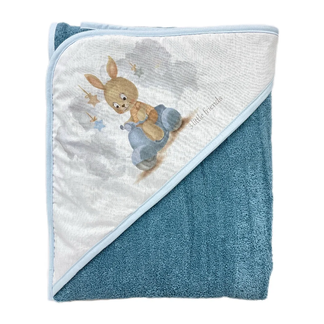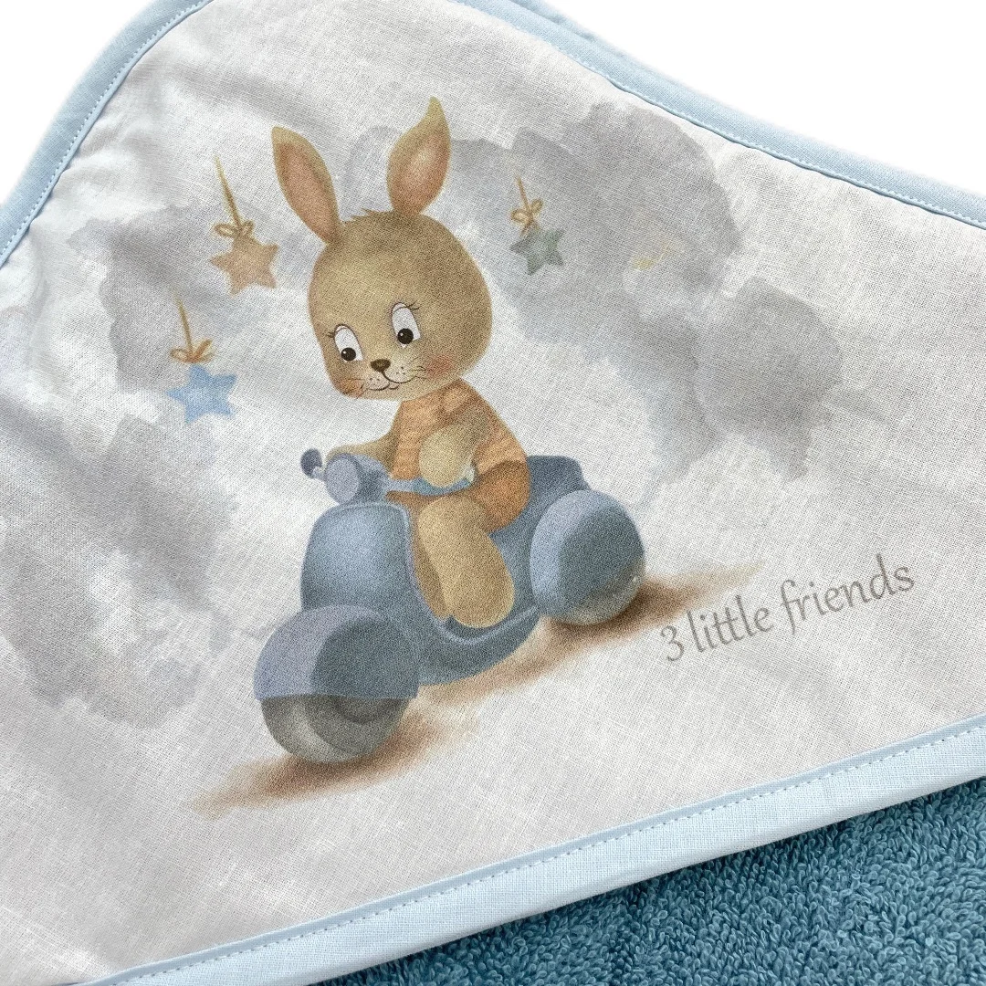 Peškir sa kapuljačom 100x100cm Zeka na motoru plavi