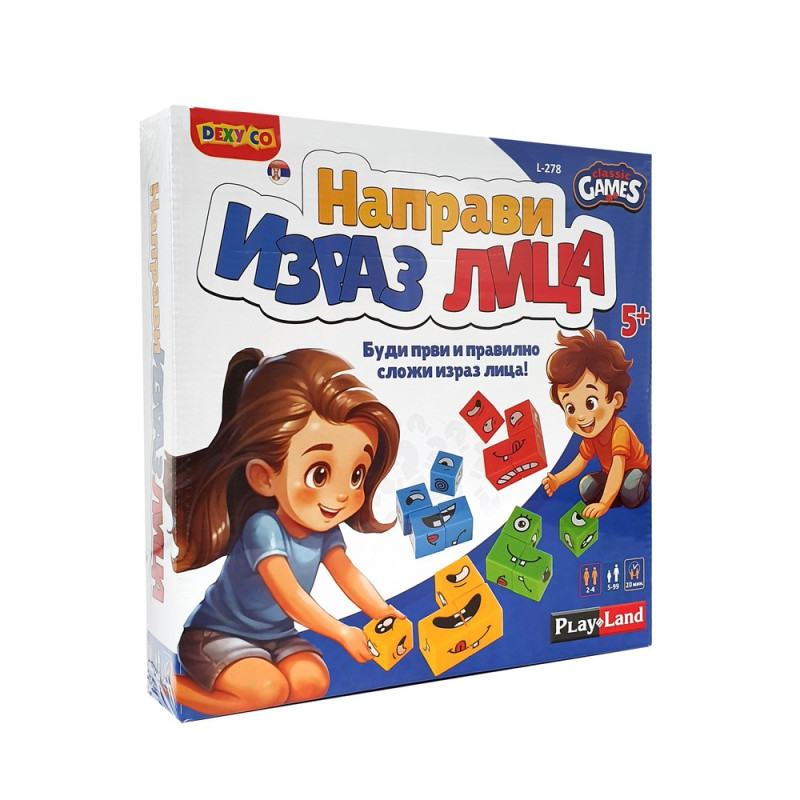 Drustvena igra Funny faces razvija vizualno pamćenje, koncentraciju i brze reakcije. Da li ce Vaša kocka biti iznenađena, ljuta, sretna ili će imati neki drugi izraz lica. Raspoloženja se vrlo brzo menjaju. Ubrzajte tempo kako biste bili pobednik. Uzrast: 5+ Broj igraca : 2-4