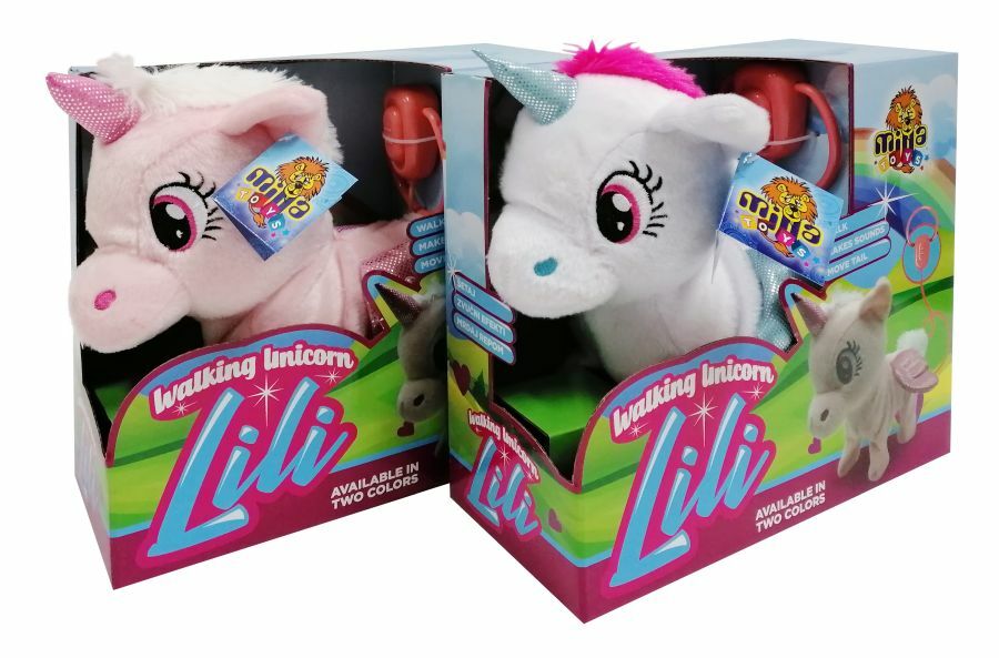 Povodac u ruke i brzo u šetnju sa svojim novim ljubimcem! Na povodcu pritisni dugme unapred i Lili će ponosno galopirati. Pritisni dugme unazad, i ona će stajati u mestu mašući repom. Lili je dostupna u dve boje (cela roze ili bela sa plavim krilima i plavim rogom).