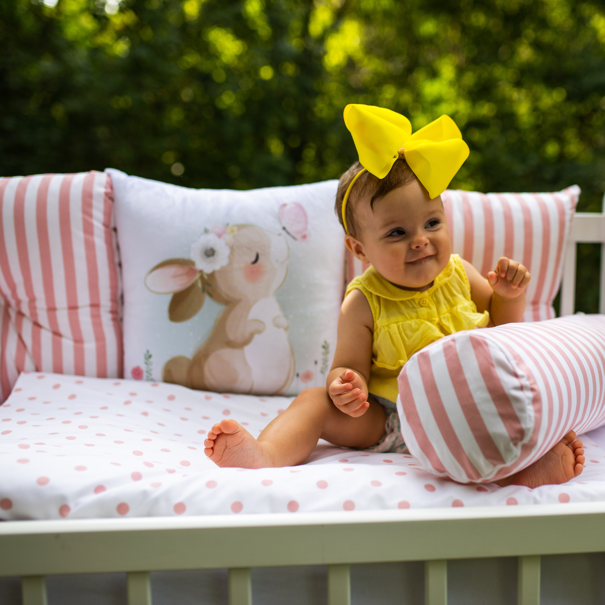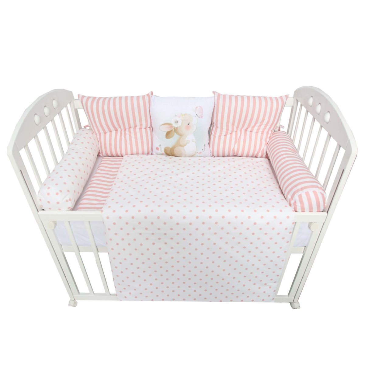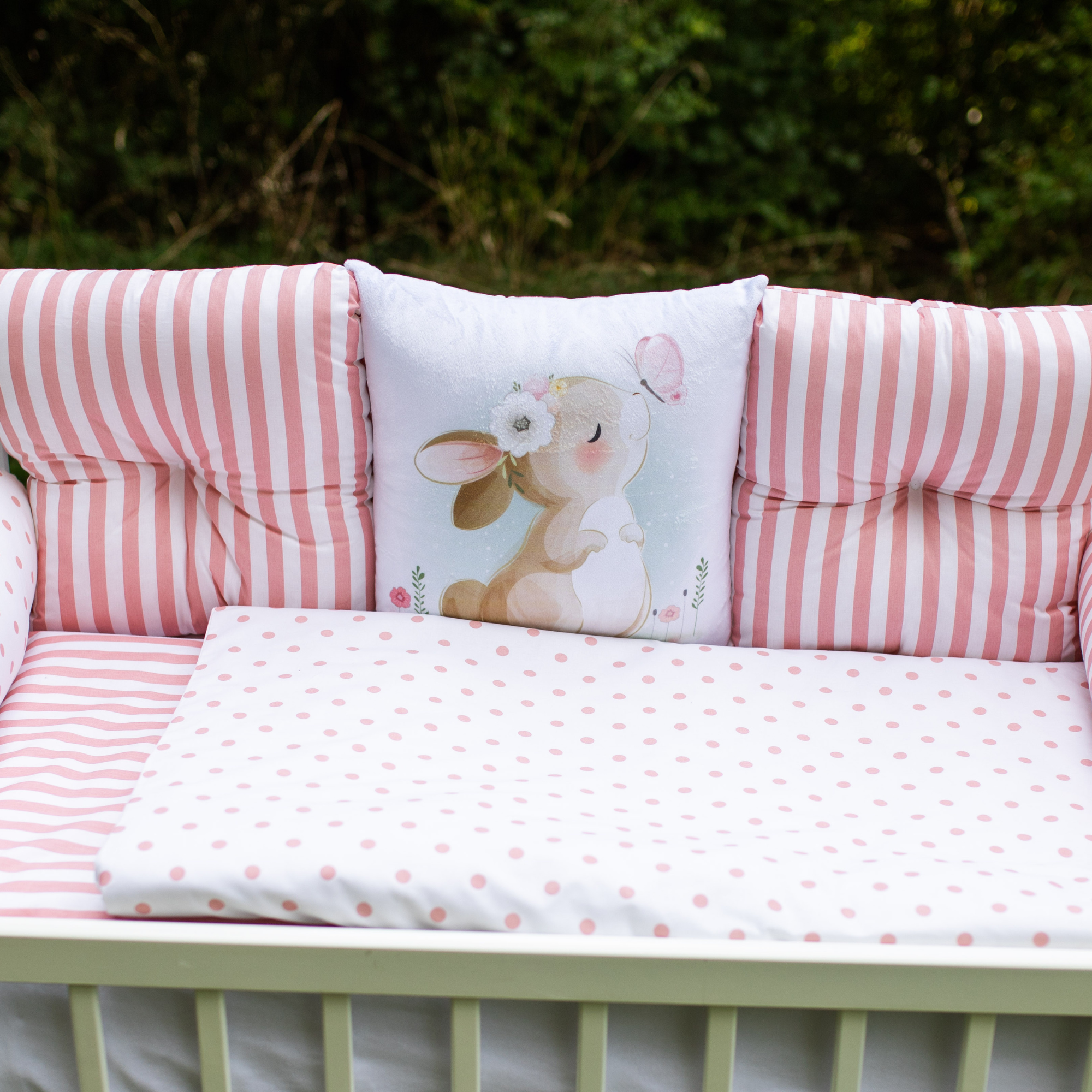 Piccolino je naš najnežniji komplet – izrađen je sa dosta ljubavi, a detalji ga čine toliko posebnim. Prvi komplet koji u svom sastavu sadrži čak 2 valjka, koji su veoma korisni za vašu bebu – najpre kao zaštita a zatim i kao motorička podrška tokom cele prve godine. Sadržaj kompleta: jastuče i navlaka za jastuče 40x50cm, jorgan i jorganska navlaka 120x80cm, donji čaršav lastih 120x60cm, jastučići ogradica-2xjastučići dugmence, 1xjastuče štampa, 2xvaljak