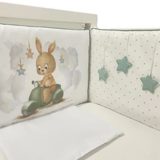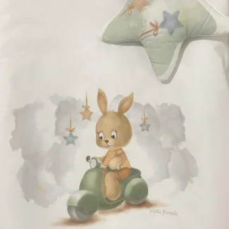 Uronite u svet nežnih snova i bezbrižne mašte uz našu komplet posteljinu Zeka na motoru, kreiranu za male sanjare koji vole toplinu, sigurnost i bajkovite avanture.