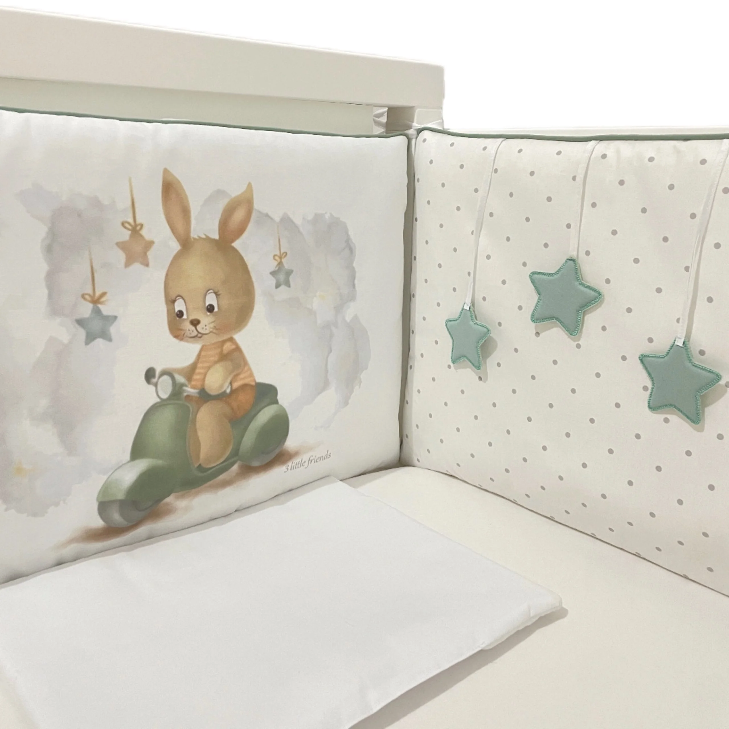 Zeka na motoru je jedan od omiljenih likova brenda 3 Little Friends — oslikan akvarel tonovima koji nežno ukrašavaju svaku bebi sobu. Pastelne zvezdice, nežni oblaci i pažljivo birana paleta boja stvaraju atmosferu mira, sigurnosti i topline.