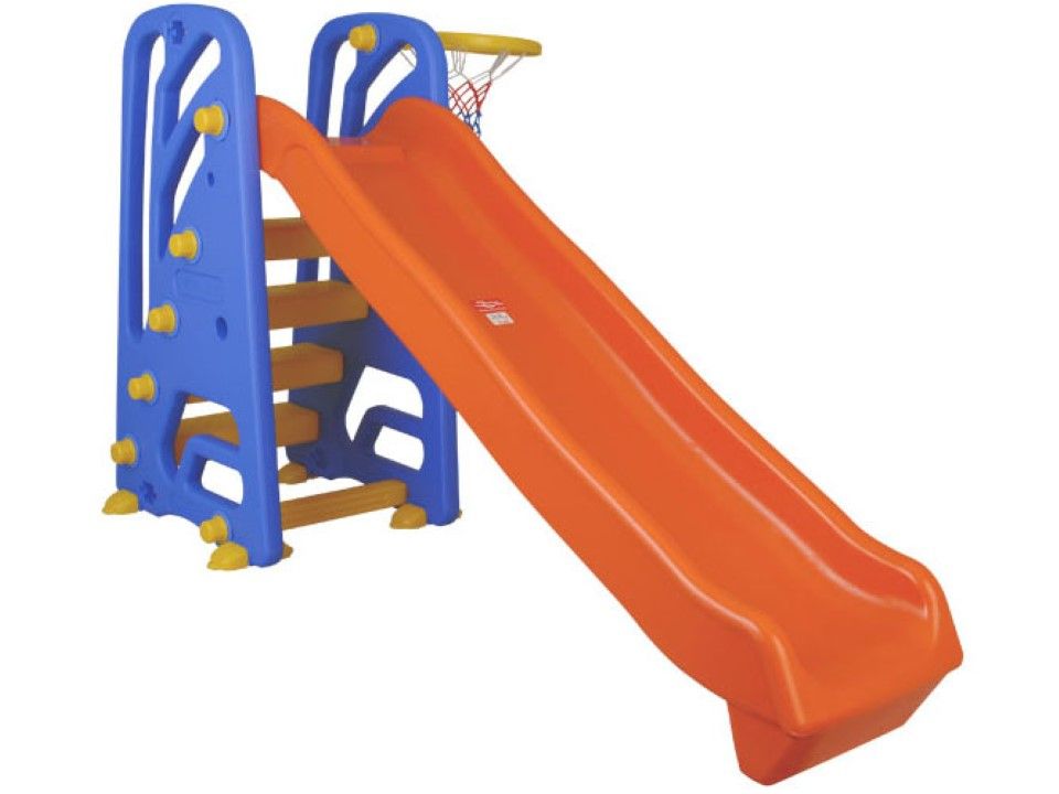 Posebnu vrednost ovom toboganu daje bočno postavljen koš, koji donosi dodatnu dimenziju zabave. Deca mogu kombinovati spuštanje sa ubacivanjem lopte, što podstiče koordinaciju pokreta i razvija motoričke sposobnosti. Na taj način igra postaje raznovrsnija i zanimljivija, a mališani duže ostaju aktivni i angažovani.
